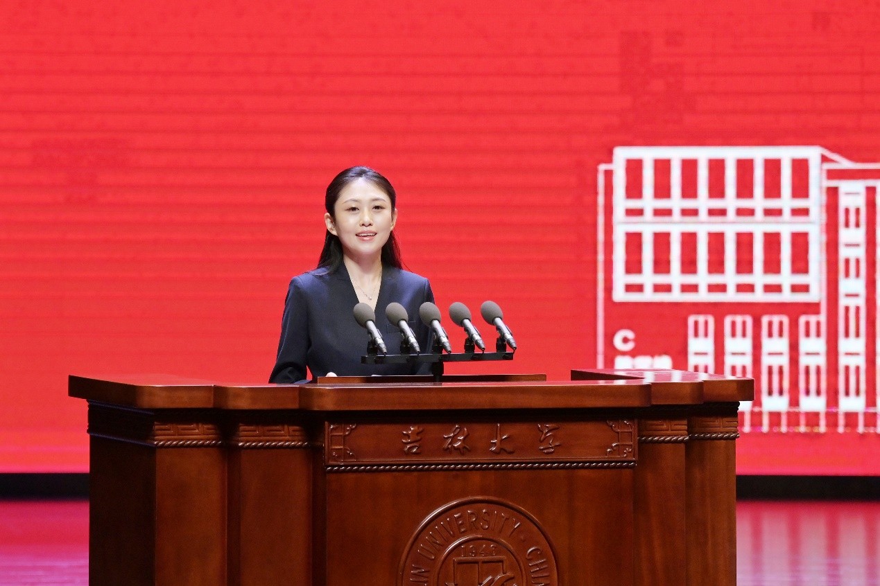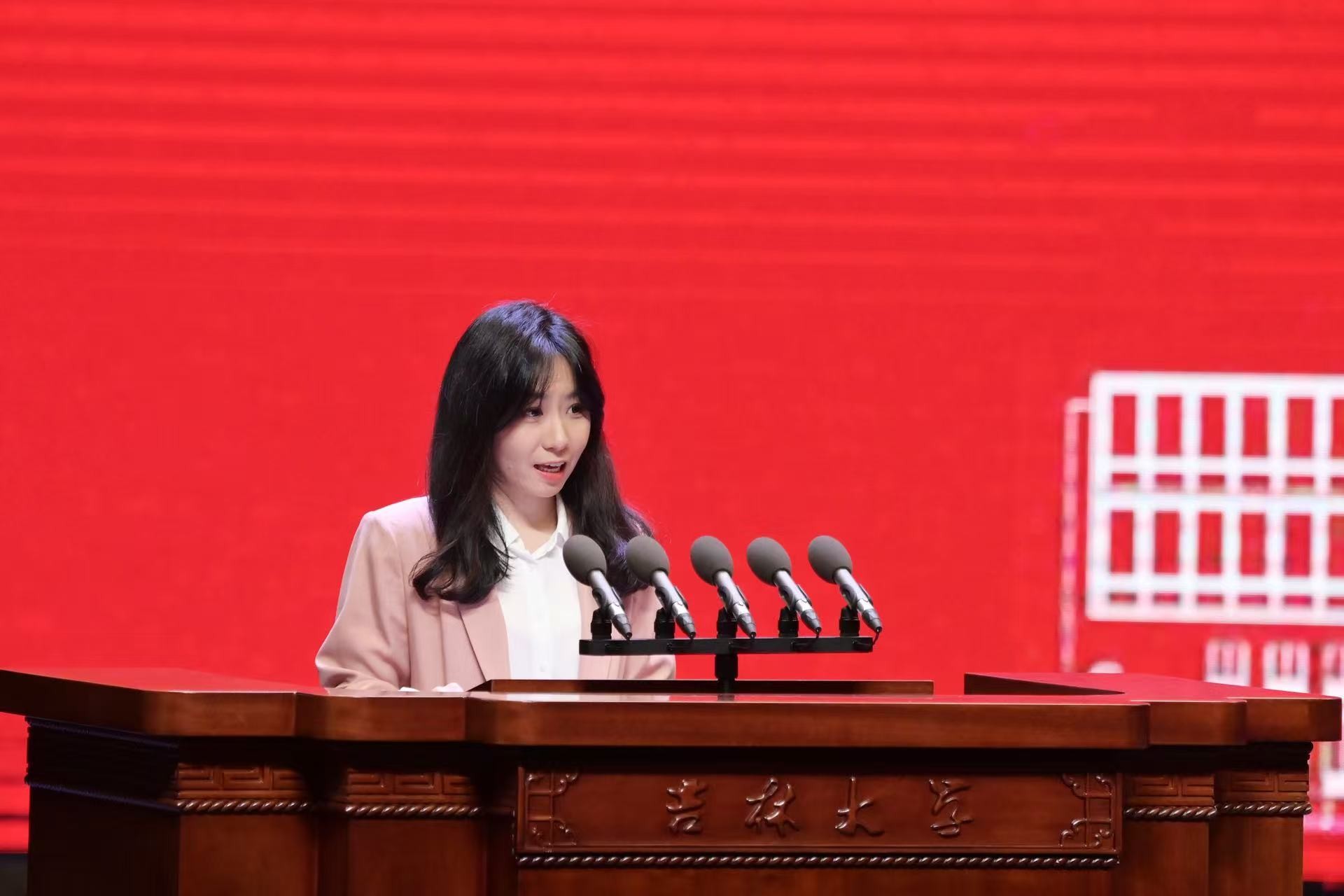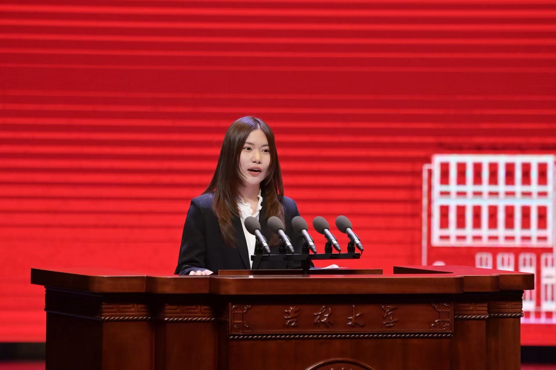 在校生代表、2024级研究生刘佳雯同学以"深耕当下,奔赴远方"为引,结合自身研途感悟与新生师弟师妹分享:“课堂啃典籍的专注、模拟法庭的思辨、田野调研的扎根,都是成长的注脚。”她将继续以专业为笔、担当为墨,在学术深耕中厚植情怀,做既通法理精髓、更怀为民热忱的追光者,以同辈姿态与学院共赴法治远方。