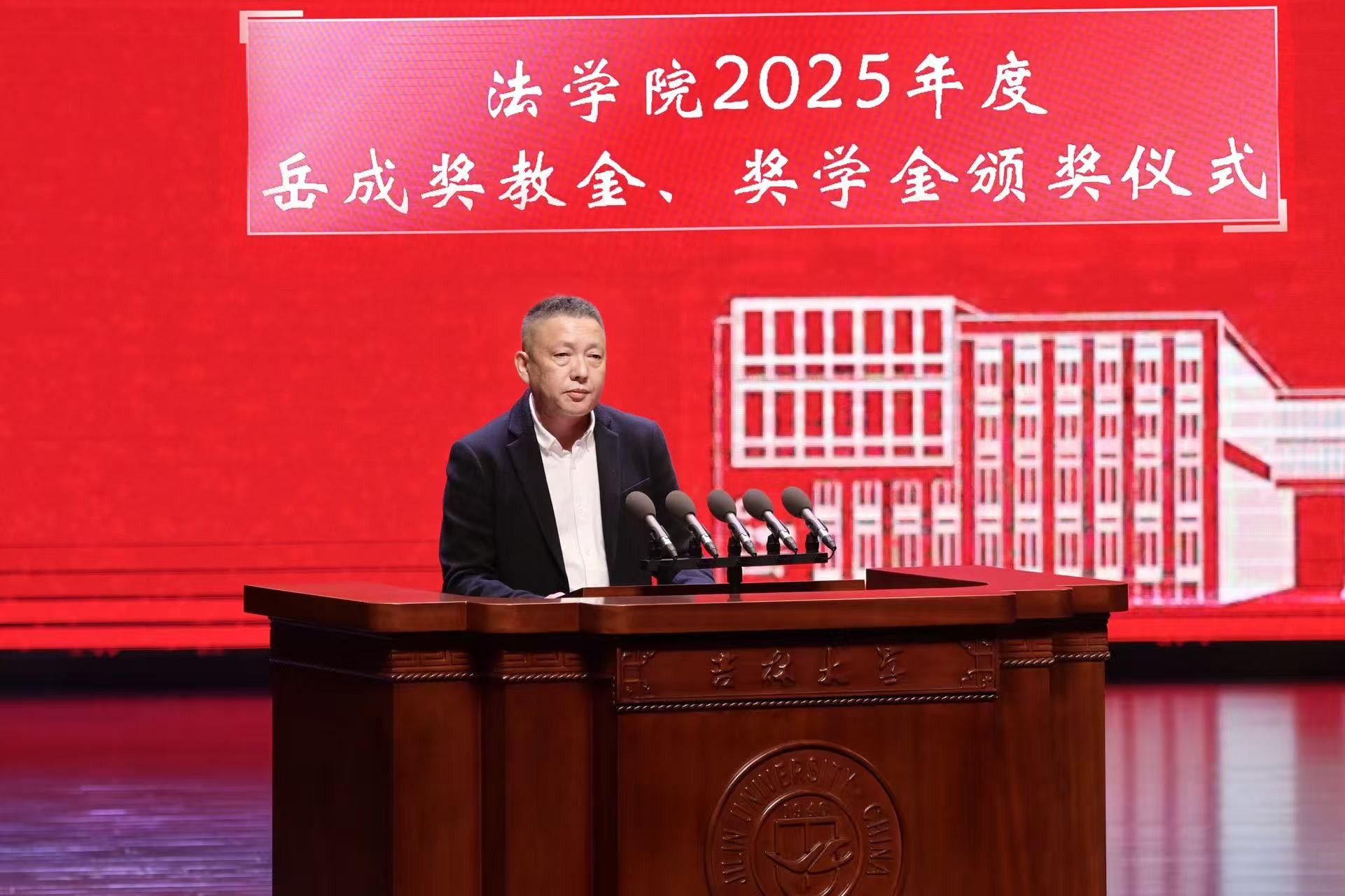岳屾山副主任代表岳成律师事务所,向获奖师生致以祝贺。他围绕理念契合、感恩培育、助力法教三方面,阐明在学院设立奖教金、奖学金的初衷:吉大太阳成集团tyc9728作为国家法学教育重镇,培养的法律人以专业学识守护公平正义,以法治信仰践行社会责任,与律所职业理念高度契合;亦感念学院对岳成律师事务所创办人岳成律师在校期间的培育。他表示,愿以绵薄之力助推学院教育事业发展。