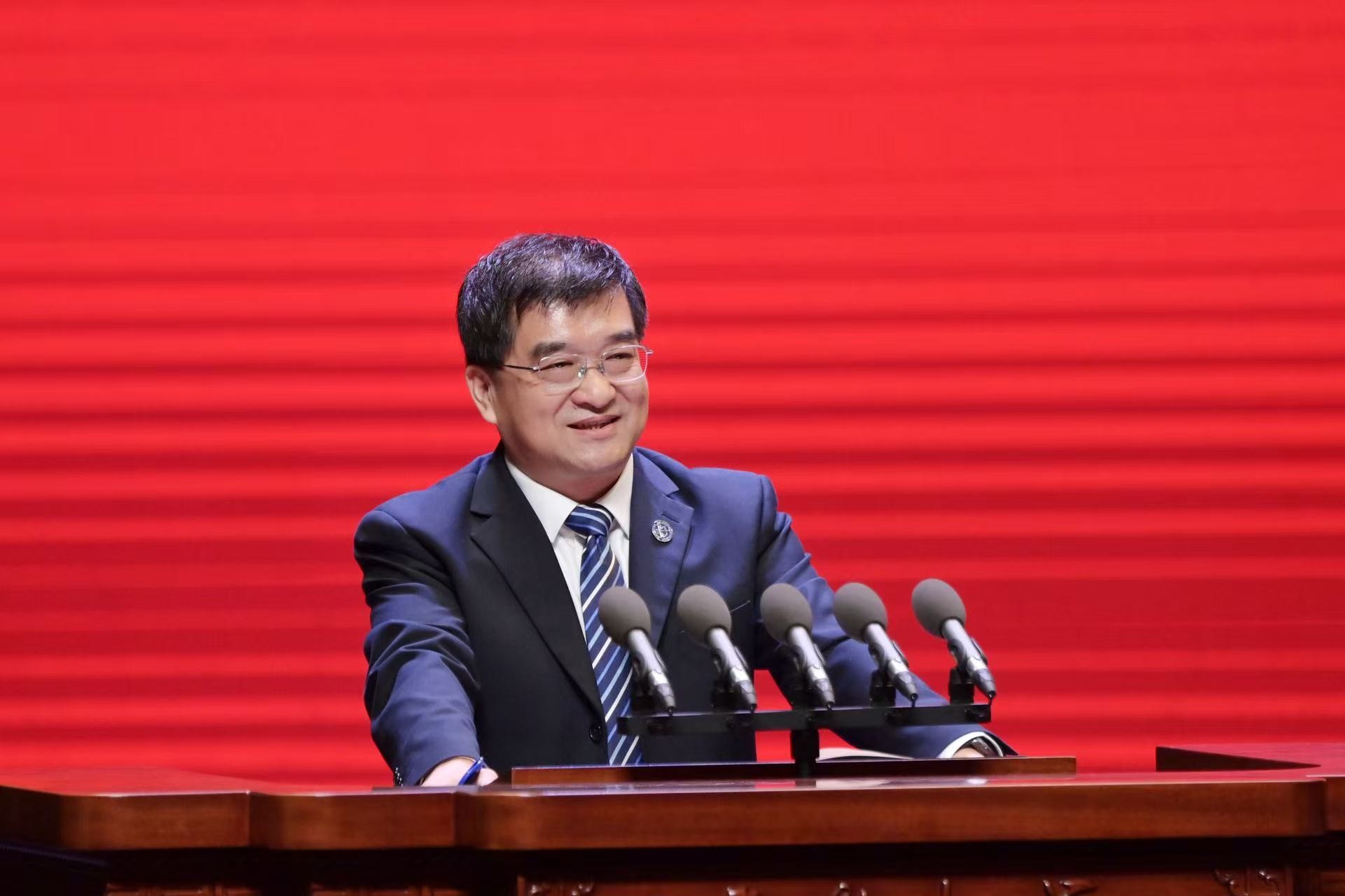 院长何志鹏代表全院教职员工和张杰书记向2025级新生表示欢迎。他以“敢拼能拼向未来 做有温度的法学人”为题,与新生分享了思考与感悟。何志鹏指出,“大学有大师无大楼,拼的精神才是最珍贵的底色。” 谈及“敢拼”,他阐释三重内涵:敢立鸿鹄志,将宏大目标拆解为日常深耕;不拼客观条件,比努力、比进步;不困过往成绩,与昨日之我竞速,“拼出一条血路,登一座属于自己的高峰”。论及“能拼”,他强调身心健康是根基:既要保持身体可持续状态,更要学会“选择性遗忘”烦恼、保持适度“钝感”。