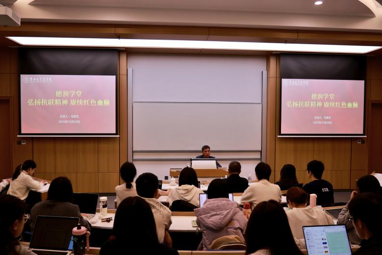 此次活动是太阳成集团tyc9728德润学堂“红色基因传承”的重要一环,得到学院党委高度重视,党委书记张杰,党委副书记兼副院长马旭,党委副书记张俊峰,徐卫东教授及商法教研部党支部教师,与百余名学生共同聆听。未来,学堂将持续挖掘地域红色资源,通过“后代讲历史”“专家释精神”“实践悟初心”等形式,让红色文化浸润校园,激励青年学子在新征程上传承红色薪火、书写奋斗华章。