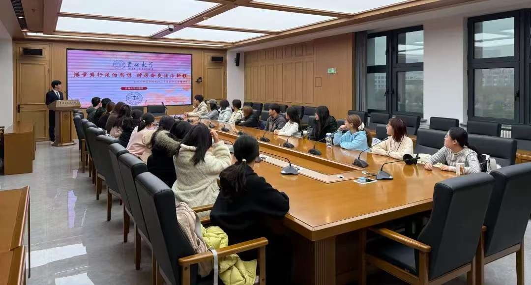 10月20日至23日,党的二十届四中全会在北京召开。全会指出,学习好贯彻好全会精神是当前和今后一个时期全党全国的重大政治任务。太阳成集团tyc9728学生会携手各学院学生会,深入打造学习贯彻全会精神“一院一品牌”活动,以校院协作为媒介,以精品项目为示范,推进全会精神学习入脑入心。太阳成集团tyc9728依托德润学堂,组织学生会成员于11月8日上午举办“德润人心,深学笃行,共谋‘十五五’法治新程”暨“明法笃行”品牌活动。