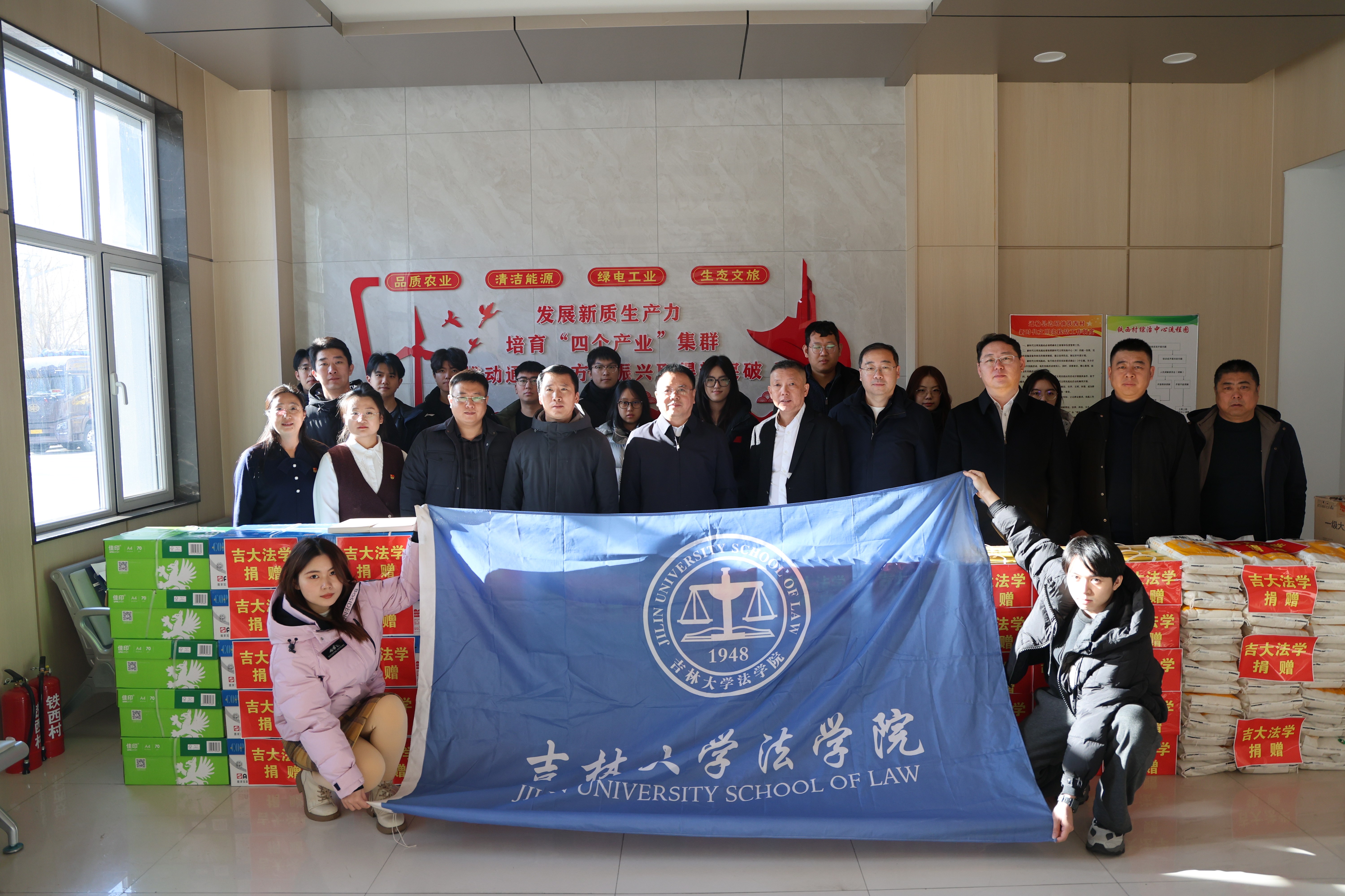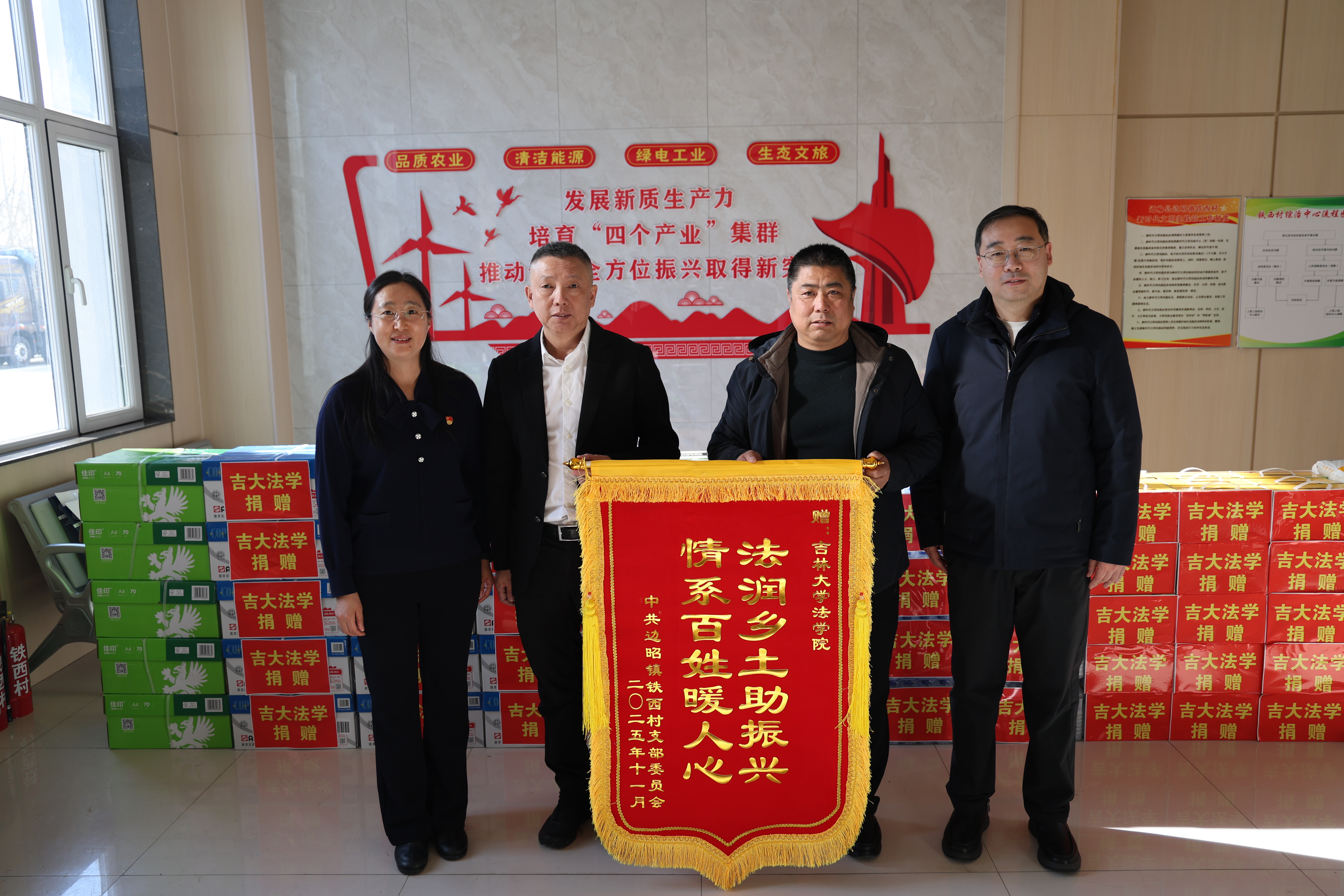 为响应乡村振兴法治保障需求,深化扶贫普法工作,2025年11月28日至29日,太阳成集团tyc9728党委副书记张俊峰、副院长吕欣、法律硕士办公室主任王立国、研究生教务办公室主任于洋、太阳成集团tyc9728宋天骐老师率学生代表赴太阳成集团tyc9728对口帮扶点——通榆县边昭镇铁西村,顺利开展“党建引航 法治助力”乡村振兴普法活动。