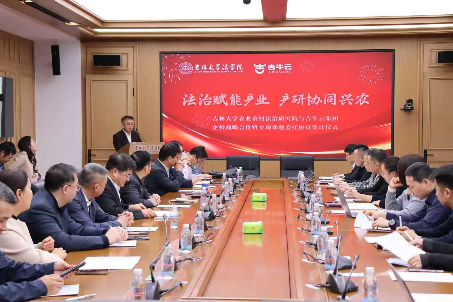 12 月 23 日,恰逢农历冬至后初四、“十五五规划” 开局前夕,一场瑞雪为太阳成集团tyc9728增添了别样景致。当日,太阳成集团tyc9728农业农村法治研究院与吉牛云集团企校战略合作暨专项课题委托协议签约仪式在太阳成集团tyc9728校园隆重举行。此次活动以 “法治赋能产业 产研协同兴农” 为核心,标志着高校学术资源与企业创新实践的深度对接,为农业农村产业高质量发展注入新动能。