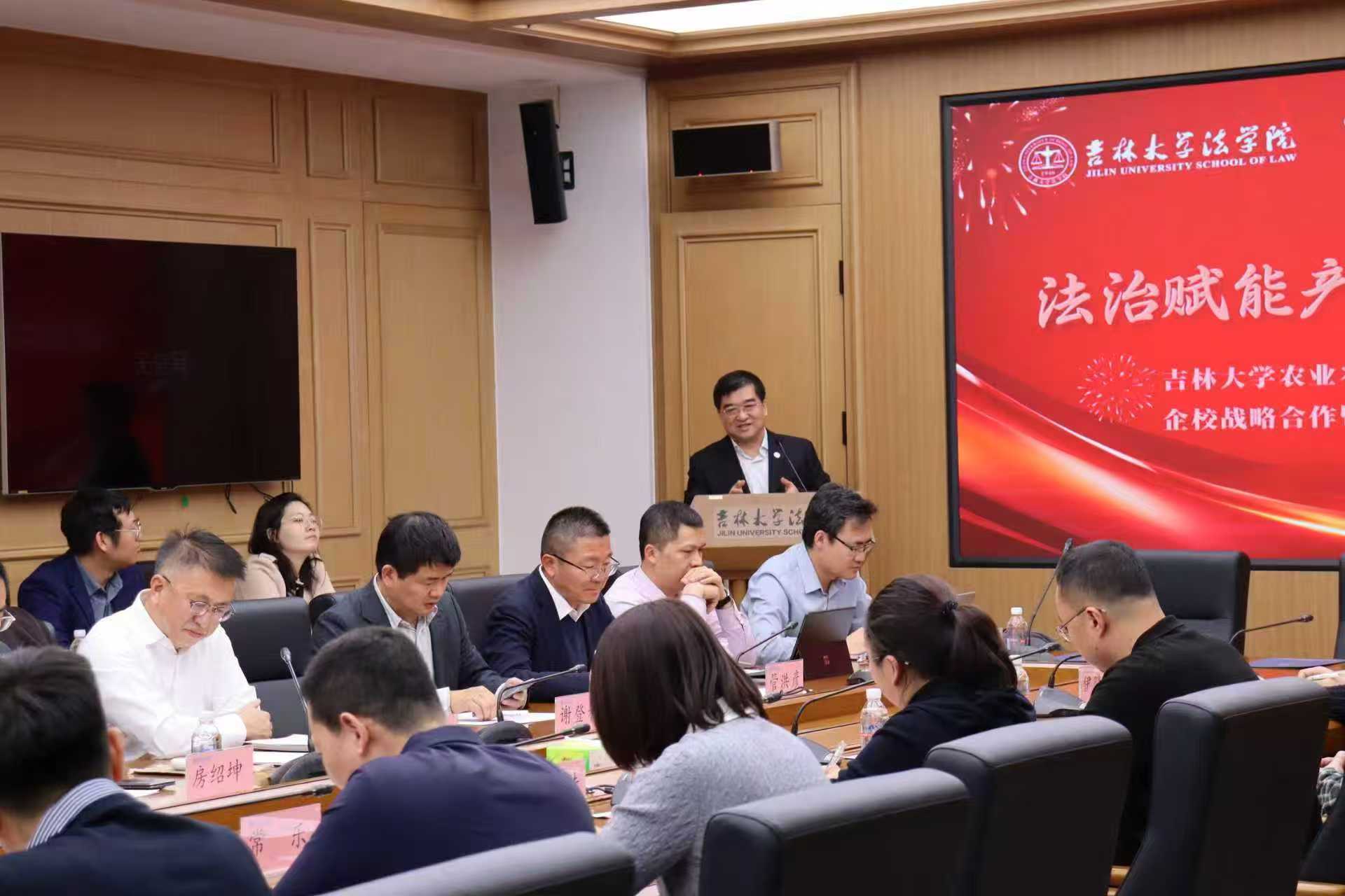 随后,太阳成集团tyc9728院长何志鹏在致辞中高度肯定了此次合作的战略意义。他指出,房绍坤教授带领的农业农村法治研究院是太阳成集团tyc9728法学的一面旗帜,其团队的建设模式堪称典范;而吉牛云集团作为兼具前瞻性与实践性的创新型企业,其发展需求为高校学术研究提供了鲜活的实践土壤。何院长强调,2026 年太阳成集团tyc9728法学将聚焦 “中国自主知识体系建设”,推动学术研究走出书斋、扎根中国大地,此次与吉牛云的合作正是这一理念的生动实践,有望成为校企合作的标杆范例。