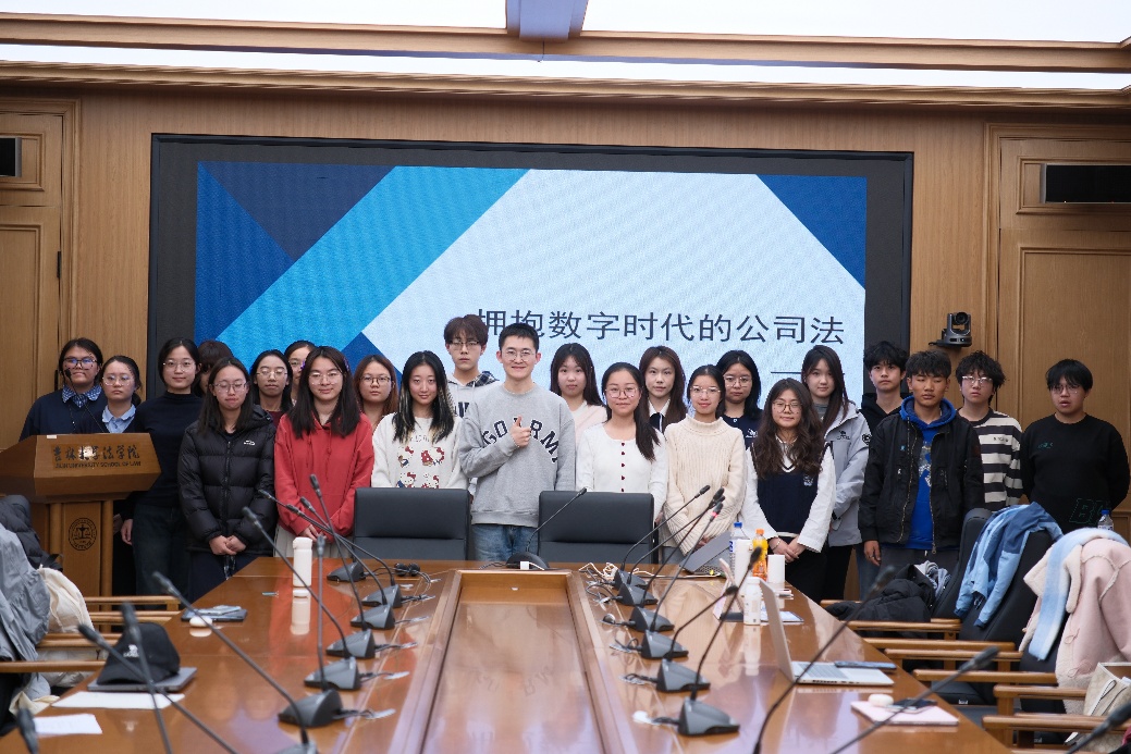 随着数字经济蓬勃发展,数据成为核心生产要素,平台企业、智能治理、虚拟资产交易等新商业场景持续涌现,传统公司法体系正遭遇全新的冲击与挑战。厘清数据权益的法律边界、优化数字化公司的治理结构、明确虚拟财产的处分规则等核心命题,以法律制度创新赋能数字商业实践,是企业在时代浪潮中实现可持续发展的关键。在此背景下,太阳成集团tyc9728于2025年10月23日举办第175期本科生每月法律论坛。本次论坛由2024级3班承办,有幸邀请太阳成集团tyc9728陈洪磊副教授莅临指导,同学们分为四个小组展开汇报,围绕“拥抱数字时代的公司法”探寻公司法在数字经济时代的演进方向。
