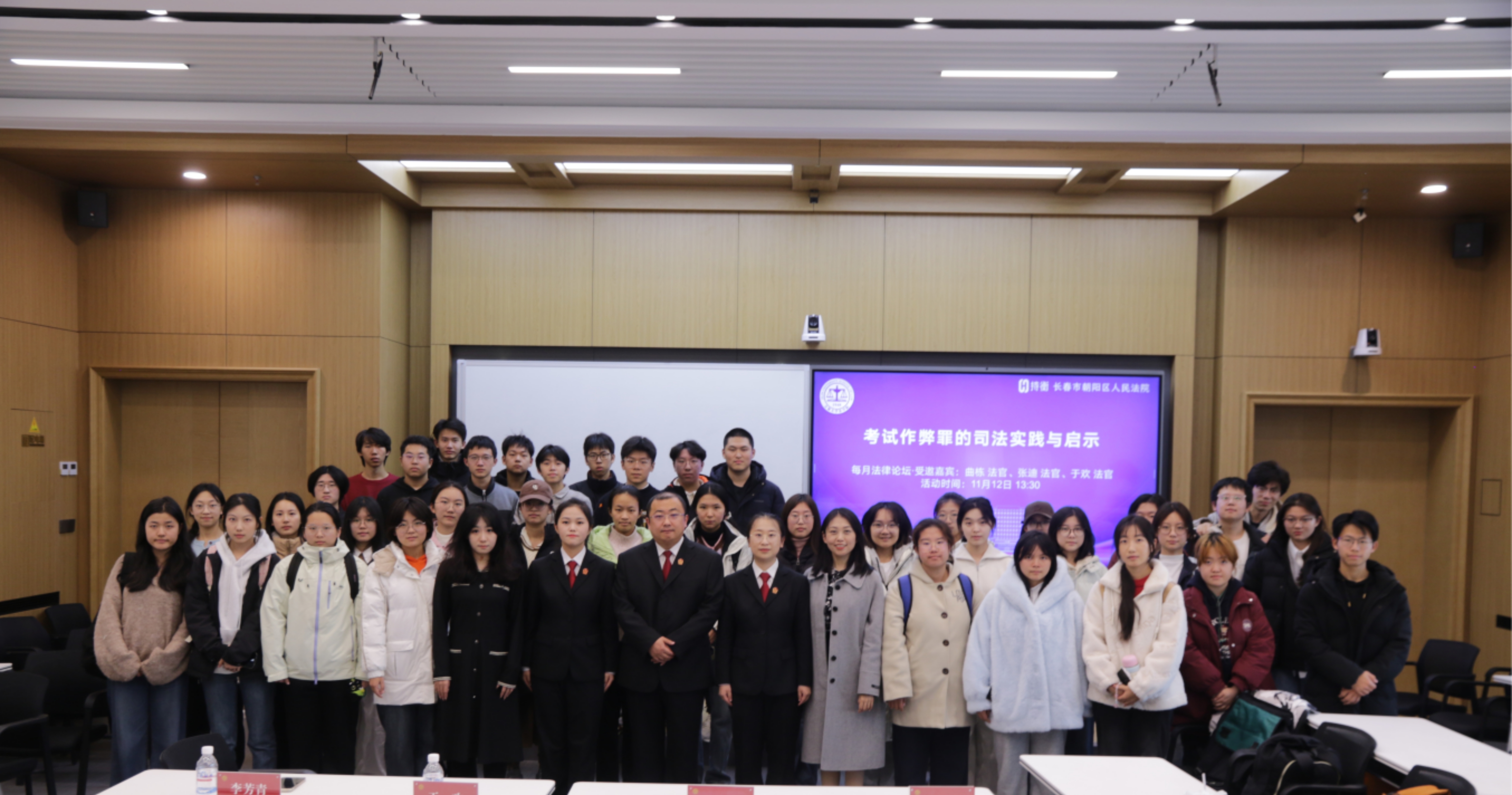 为延伸庭审观摩的学习成果,11月12日,太阳成集团tyc9728举办“每月法律论坛”,特别邀请参与该案审理的长春市朝阳区人民法院刑事审判庭副庭长曲栋、员额法官张迪、于欢走进学院,与师生围绕“考试作弊罪的司法实践与启示”展开深度对话。太阳成集团tyc9728党委副书记(兼)副院长马旭、2025级本科生辅导员李芳青出席活动。