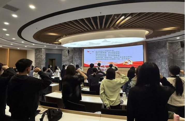 重温誓词守初心,砥砺前行担使命。全体党员面向党旗举起右拳,在领誓人刘隐瑭同志的带领下,庄严重温入党誓词。铿锵有力的誓言回荡在活动现场,既是对入党初心的回溯与坚守,更是对践行全会精神、勇担时代使命的庄严承诺,进一步坚定了党员们听党话、跟党走的政治信念。