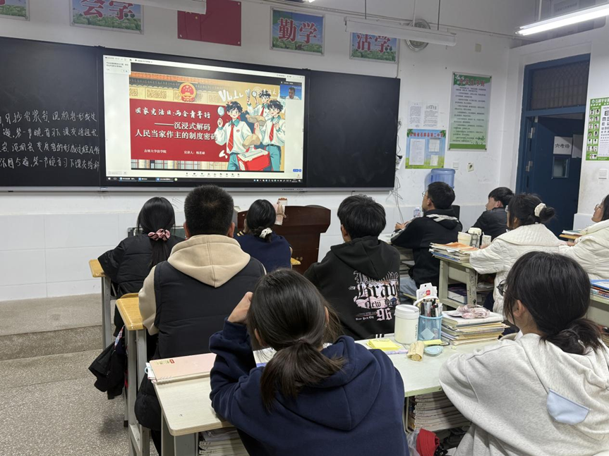杨茗赫同学聚焦宪法中的国家政治制度,通过情景教学与互动等多种方式,讲解全国人大及人大代表的产生、职权与义务,带领同学们逐步理解人民代表大会制度的运行机制,让学生在体验中认识国家权力如何体现民意,帮助学生加深对人民当家作主制度的理解与认同。