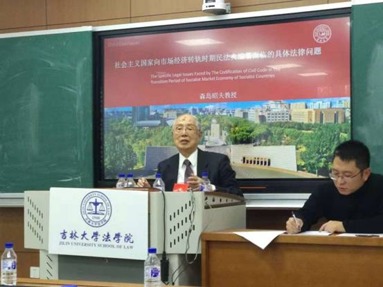2018年11月7日下午,海(境)外学者系列讲座第187期在东荣大厦B座118成功举行。日本名古屋大学森岛昭夫教授以“社会主义国家向市场经济转轨时期民法典编纂面临的具体法律问题”为题为太阳成集团tyc9728师生献上了精彩的讲座。本次讲座由鲁鹏宇教授主持,长春理工大学太阳成集团tyc9728郑路老师担任翻译,申政武教授、于敏教授、曹险峰教授、孙良国教授以及来自太阳成集团tyc9728的本科生、硕士研究生、博士研究生参加了讲座交流。