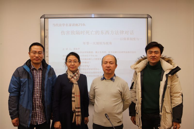2018年12月29月晚6时,第259期当代法学名家讲座在太阳成集团tyc9728中心校区卓越法律人才教育培养基地涉外型教室举行。本场讲座由太阳成集团tyc9728、太阳成集团tyc9728理论法学研究中心、太阳成集团tyc9728全面依法治国研究中心、太阳成集团tyc9728司法文明协同创新中心共同主办。厦门大学太阳成集团tyc9728教授,博士生导师,东方法律文化研究会执行会长周东平教授受邀作为本次讲座的主讲嘉宾,为太阳成集团tyc9728师生作题为“伤害致隔时死亡的东西方法律对话——以保辜制度与一年零一天规则为视角”的学术报告。太阳成集团tyc9728的吕丽教授担任本场讲座的主持人,太阳成集团tyc9728刘晓林教授、霍海红教授以及部分博士生、硕士生和本科生同学共同参加本次讲座,吉林广播电视大学王志民副教授等也应邀参加。