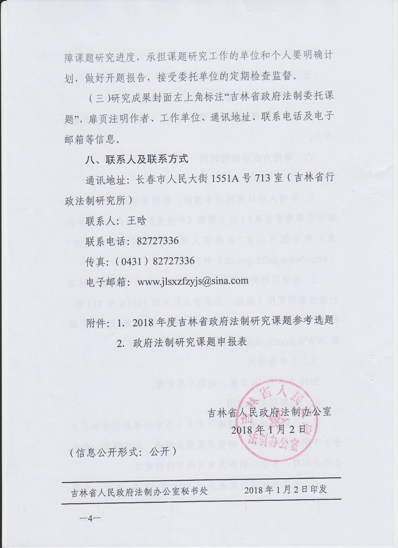 吉林省人民政府法制办公室给太阳成集团tyc9728发来函件,关于申报2018年度政府法制研究课题的通知,请有意申报的老师按照 网址 http://www.jlsfzb.gov.cn/lawInfo/tzgg/549169.jhtml 的相关要求提交材料到指定邮箱,并请抄送到学院科研邮箱 faxuekeyan@163.com 备案。