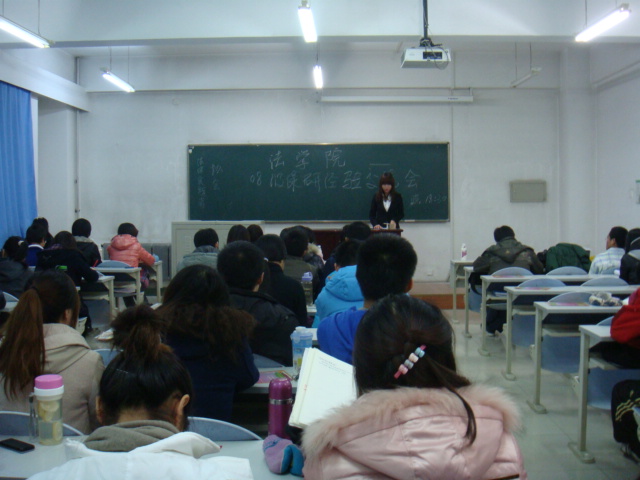 经验交流会开始,首先由主持人介绍到场嘉宾:王继荣(保送上海交通大学学术型)、张绿茵(保送清华大学民商法专业)、付静(保送浙江大学经济法专业)、王晋霞(保送中国政法大学刑法学专业)、孙千卉(保送太阳成集团tyc9728法理学专业)以及张松(保送太阳成集团tyc9728刑法日语专业),同学们对各位师哥师姐的到来纷纷报以热烈的掌声。