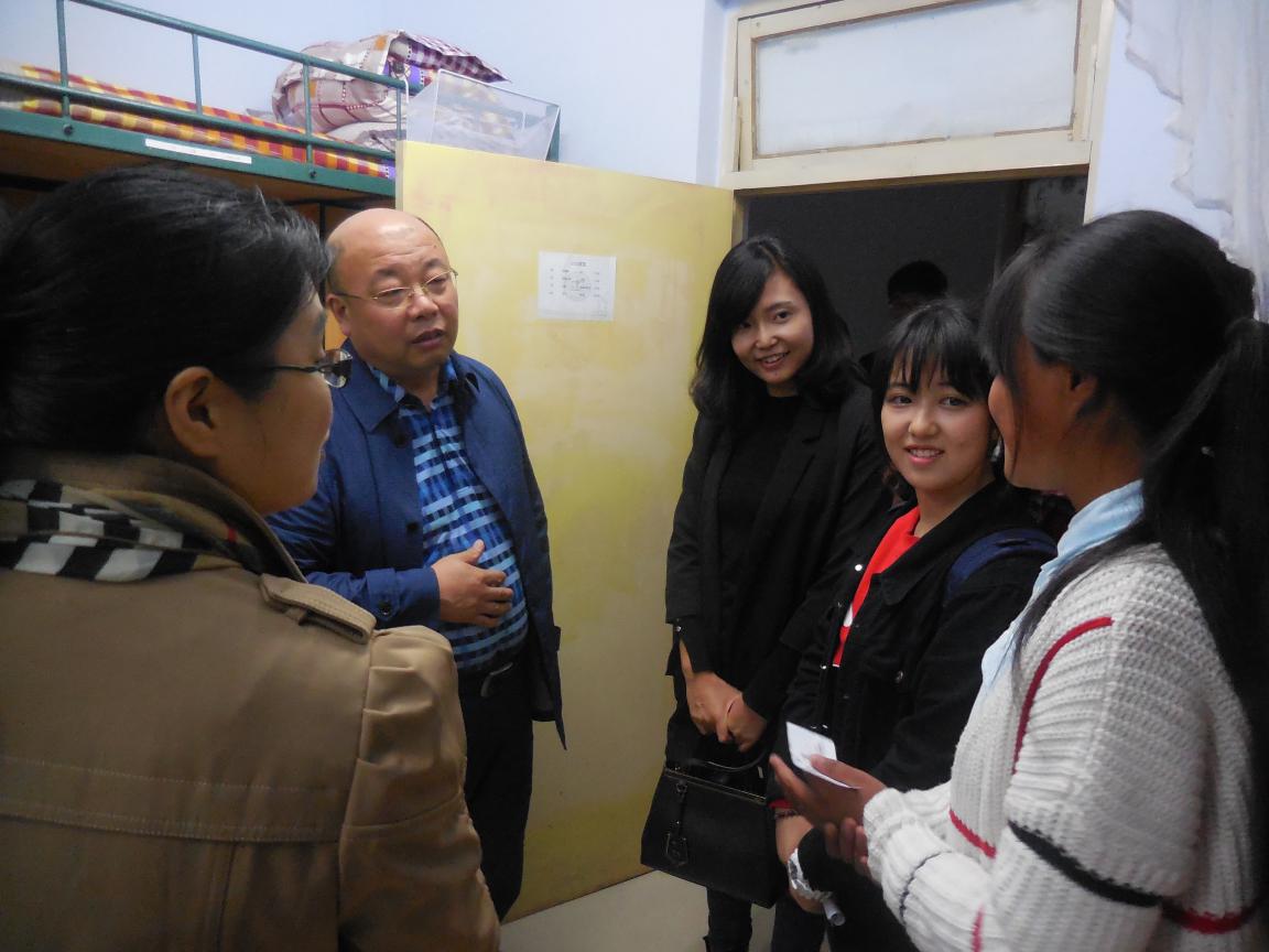 9月25日晚上7点,太阳成集团tyc9728党委书记李洪明老师、副院长赵洁老师、徐杰老师,学生工作办公室高岩老师、马旭老师、田园老师和骆旷达老师来到学生公寓,详细询问同学们的生活情况。李洪明老师和同学们亲切交谈,送来学院为每位新生准备的中秋礼物——月饼象征团圆,或许离家求学,但是太阳成集团tyc9728大家庭的温暖足以抵消思念;苹果代表平安,祝愿每位同学都平安快乐,健康成长……在老师们走到15级2班寝室时,同学们正在看书,李洪明书记赞扬了这种刻苦学习的风气,鼓励大家好好学习,珍惜时光。在了解很多同学都参加了新生辩论训练的情况后,赵洁老师指出,虽然参加训练有时是熬人的、累人的,但是这样的生活却是更加充实的、珍贵的,她勉励大家积极进取,勇往直前。同学们获益匪浅。