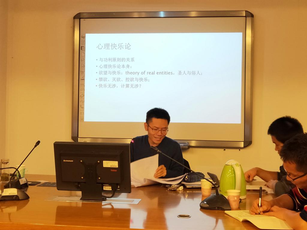 翟小波博士以边沁的功利主义理论为研究对象,从多个方面对边沁的功利主义理论进行了讲解与分析。他首先提出了什么是“功利原则”这一基本问题,并依循这一基本问题开始了对具体问题的探讨。他指出,依据边沁的理论,功利原则的核心是“快乐”和“痛苦”。因此,功利主义在对具体问题进行分析时,首先考虑的就是“快乐”和“痛苦”,并且“快乐”和“痛苦”是可以被“量化”的。紧接着,翟小波博士对“功利主义所遭到的批评”以及“功利主义是如何回应的”等一系列相关问题进行了讲解,所涉及的具体问题包括“快乐如何计算”、“自然主义的谬误”、“功利原则的证明”、“自利与功利的关系”、“‘快乐的’与道德算术”、“道德学的意义”等等。在讲解的过程中,内容精彩纷呈、高潮迭起。