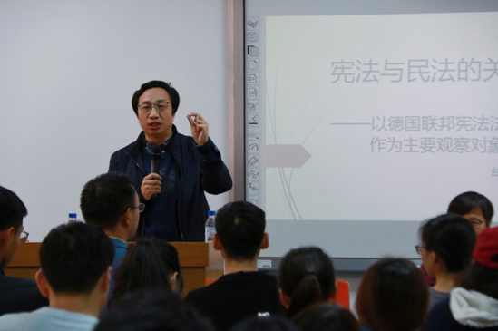 在学术与谈和提问阶段,王锴教授针对德国宪法学客观价值秩序理论对中国问题解决的现实意义发表了独到的见解,进一步指出客观法与客观价值秩序二者的关系,并向陈教授提出客观法的功能是否存在边界、划分的标准在哪里的问题,寻求陈教授对当下基本权利第三人效力的理论的见解。王立栋老师就法学方法论和客观价值秩序理论的关系请陈教授进一步回应。邢斌文老师立足于我国立法和司法实践,向陈老师请教我国从什么角度借鉴德国理论,选择性吸收到什么程度,并举出三个立法实践问题寻求基本权利救济权形成的解答。在座的其他老师和同学们也纷纷向陈老师提出了几个有针对性的问题,包括法哲学与法政治学的互动关系、如何避免不合理国家权力配置侵犯基本权、德国基本法内涵和外延的界限以及对犯罪行为限制基本权的理解、德国基本法的形式和基本法客观价值的实现途径。陈教授对以上的学术问题予以一一回应,强化了大家对客观价值秩序理论的深入理解。