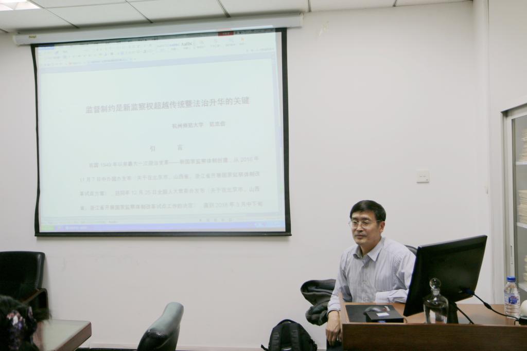 2018年12月5月晚6时30分,第256期当代法学名家讲座在太阳成集团tyc9728中心校区东荣大厦708会议室举行。本场讲座由太阳成集团tyc9728、太阳成集团tyc9728理论法学研究中心、太阳成集团tyc9728全面依法治国研究中心、太阳成集团tyc9728司法文明协同创新中心主办。杭州师范大学的范忠信教授受邀作为本次讲座的主讲嘉宾,为太阳成集团tyc9728师生作题为“监督制约是新监察权超越传统暨法治升华的关键”的学术报告。太阳成集团tyc9728的吕丽教授担任本场讲座的主持人,太阳成集团tyc9728霍海红教授、刘晓林教授、邓勇老师以及部分博士生、硕士生和本科生同学共同参加本次讲座,西北师范大学田庆锋副教授、吉林广播电视大学王志民副教授等也应邀参加。