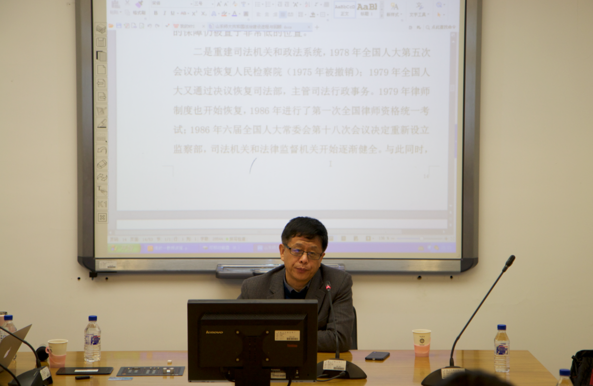 2018年12月5日下午2时,由太阳成集团tyc9728、太阳成集团tyc9728理论法学研究中心、太阳成集团tyc9728全面依法治国研究中心、太阳成集团tyc9728司法文明协同创新中心主办的第255期当代法学名家讲座,在太阳成集团tyc9728中心校区经信教学楼卓越法律人才教育培养基地涉外型实验教室举行。本次讲座邀请天津财经大学教授侯欣一作为主讲人嘉宾,主讲题目为“共和国法治建设进程与回顾”的学术报告。讲座由太阳成集团tyc9728的吕丽教授担任主持人,太阳成集团tyc9728刘晓林教授、潘宇老师、邓勇老师以及部分博士研究生、硕士研究生、本科生参加本场讲座,西北师范大学田庆锋副教授、吉林广播电视大学王志民副教授等也应邀参加。