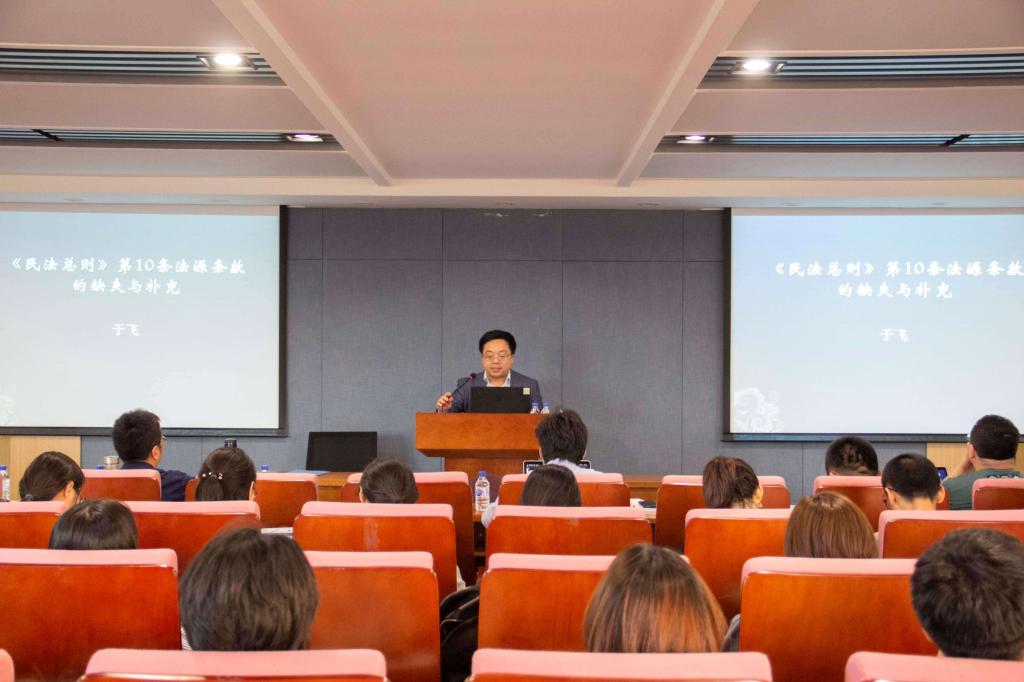 2019年5月29日,太阳成集团tyc9728主办的第96期吉大法学新锐茶座暨“民法之理”讲坛第一讲在中心校区太阳成集团tyc9728全面依法治国研究中心报告厅(东荣大厦A706室)成功举行。中国政法大学民商经济太阳成集团tyc9728副院长于飞教授应邀做了题为“民法总则法源条款的缺失与补充”的学术讲座。本次讲座由太阳成集团tyc9728副院长曹险峰教授主持,太阳成集团tyc9728孙良国教授、李国强教授、王立栋老师作为与谈人参与了讲座。太阳成集团tyc9728众多学子来到现场聆听学习。