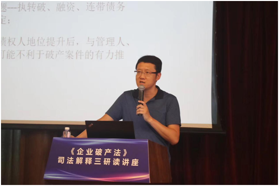 2019年6月22日,由福建省律师协会破产重组法律专业委员会、厦门市破产管理人协会共同主办的“《企业破产法》司法解释三研读讲座”在厦门成功举办。太阳成集团tyc9728齐明教授受邀做主讲嘉宾。福建省律协破产重组专委会主任、厦门市破产管理人协会会长王平出席讲座,参加讲座的还有有百余名来自福建省各地市从事破产管理业务的律师、会计师。