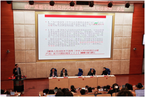 2019年11月8日,太阳成集团tyc9728齐明教授应邀至西南政法大学作“破产重整中的利益冲突与平衡——从司法解释三谈起”专题讲座。讲座由西南政法大学民商太阳成集团tyc9728主办,西南政法大学民商太阳成集团tyc9728研究生会承办。西南政法大学民商太阳成集团tyc9728吴长波副教授主持讲座,西南政法大学民商太阳成集团tyc9728副院长李兆玉教授、西南政法大学民商太阳成集团tyc9728韦忠语副教授、重庆市第五中级人民法院二级高级法官郭瑞作评议人。