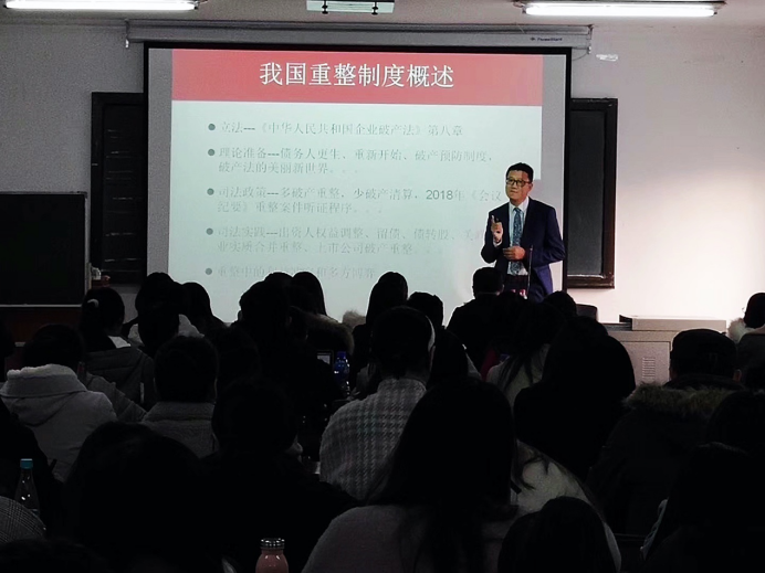 2019年11月22日,太阳成集团tyc9728齐明教授应邀主讲辽宁大学法治论坛(第260讲),主题为“对我国破产重整制度的几点追问和反思”,辽宁大学太阳成集团tyc9728院长闫海教授担任主持人。辽宁大学太阳成集团tyc9728教师、在读博士及硕士研究生参加论坛。讲座现场学术氛围浓厚,问题研讨热烈,参会嘉宾受益匪浅。