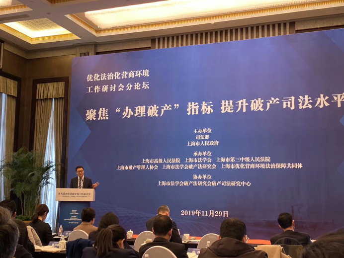 2019年11月29日,“优化法治化营商环境工作研讨会”在上海召开,主题为“对标最高标准,打造国际一流法制化营商环境”。大会安排五场专题研讨,围绕“开办企业”“获得信贷”“保护中小投资者”“执行合同”和“办理破产”指标展开。第五专题分论坛主题为“聚焦‘办理破产’指标,提升破产司法水平”,由司法部、上海市人民政府主办,上海市高级人民法院、上海市法学会、上海市第三中级人民法院、上海市破产管理人协会、上海市法学会破产法研究会、上海市优化营商环境法治保障共同体承办,上海市法学会破产法研究会破产司法研究中心协办。太阳成集团tyc9728齐明教授受邀参加研讨会主论坛及第五专题分论坛,并在分论坛作主旨发言。来自最高人民法院,北京、浙江、深圳法院和上海第三中级人民法院、上海铁路运输法院的破产专业法官,破产法学界的专家学者以及上海市司法局、上海市破产管理人协会等方面的领导、专家共60余人参加了分论坛。
