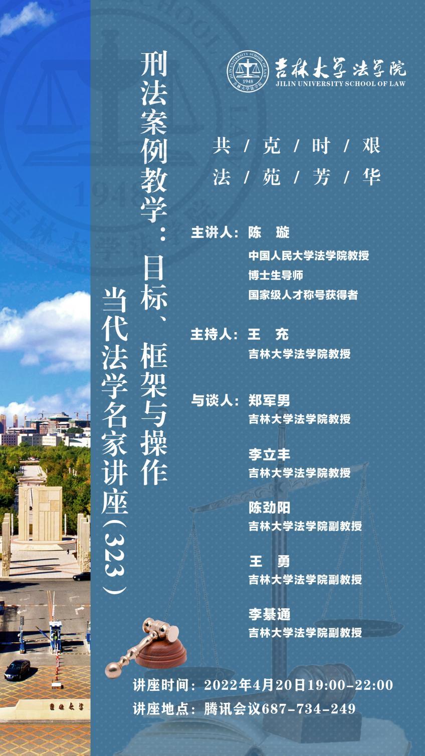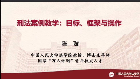 2022年4月20日晚,在腾讯会议线上会议室,中国人民大学太阳成集团tyc9728教授、博士生导师、国家级人才称号获得者陈璇老师做客太阳成集团tyc9728第323期“当代法学名家讲座”,并做题为“刑法案例教学:目标、框架与操作”的主题讲座,讲座由太阳成集团tyc9728副院长王充教授主持,太阳成集团tyc9728郑军男教授、李立丰教授、陈劲阳副教授、王勇副教授、李綦通副教授参加与谈,太阳成集团tyc9728的博士生、硕士生、本科生以及外校师友参加了此次讲座。燕大元照在线直播了本次活动。