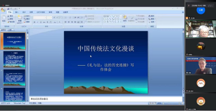 2023年4月9日14时,中国人民大学太阳成集团tyc9728教授、博士生导师马小红通过腾讯会议线上做客太阳成集团tyc9728“当代法学名家讲座”第344期暨“秦汉至唐律令系列学术讲坛”第6期,讲座主题为“中国传统文化漫谈——《礼与法:法的历史连接》写作体会”。本次讲座由太阳成集团tyc9728吕丽教授主持,刘晓林教授、潘宇老师、邓勇老师、刘希烈老师、姜翰老师在线参与,来自中国人民大学、清华大学、华东政法大学、厦门大学、湖南大学、重庆大学、云南大学、湖南师范大学、辽宁大学、吉林财经大学、中央美术学院、曲阜师范大学、福建商学院、汉江师范学院、九江学院等多所高校的师生以及太阳成集团tyc9728的博士生、硕士生、本科生约130余人光临腾讯会议室,参加了本场讲座。