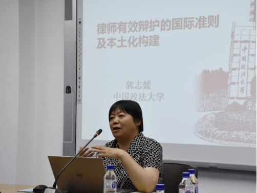 郭志媛教授的讲座围绕律师有效辩护的国际准则及本土化构建问题,从“如何理解律师有效辩护”“律师有效辩护的国际准则”和“律师有效辩护的本土化构建”三个方面展开。郭志媛教授首先梳理了当前学界对律师有效辩护概念存在的共识与分歧,认为从“辩护权的国家保障”与“取得实体效果的辩护”两个角度来理解有效辩护是理论界和实务界对这一概念的误读。郭志媛教授指出,有效辩护的侧重点在于通过设定辩护律师的行为底线来促使律师勤勉尽职,而这些行为主要以程序性辩护为表现形式。在澄清有效辩护概念的基础上,郭志媛教授详细解读了《关于保护面对死刑的人的权利保障措施》《发展和国际经济新秩序环境中预防犯罪和刑事司法的指导原则》《关于律师作用的基本原则》以及《关于在刑事司法系统中获得法律援助机会的原则和准则》等国际文件中涉及的有效辩护准则。关于律师有效辩护的本土化构建,郭志媛教授认为,需要关注有效辩护的衡量标准、有效辩护的监督评价机制和无效辩护的救济。她特别指出,有效辩护标准是律师辩护工作的“及格线”,应当成为律师辩护质量的底线要求。未来,应当确立法律援助机构和律师事务所双重质量监督模式,构建有效辩护阶梯式评价及救济模式。最后,郭志媛教授提出,应科学界定有效法律援助的标准和保障机制,合理建立认罪认罚案件庭前有效辩护标准。