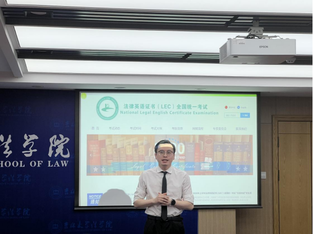 张法连教授首先阐释了涉外法治人才的培养定位,明确了法律英语的学习应是涉外法治人才培养的起点和关键。其次,张法连教授进一步将涉外法治人才的核心素养聚焦为“精英明法”,即精通法律英语和明晰国际法律。对于前者,需要认识到,法律英语并不能简单地和英语划等号,而是一门专门外语,以普通外语见长的律师并不一定能从事涉外法律服务工作。对于后者,张法连教授强调,国际法律不等于国际法,国际法是涉外法治工作的重要内涵之一,但绝非全部,国际法律还应包括重要的国别法。再次,张法连教授明晰了涉外法治人才的成长规律并澄清了相关的认识误区,即不宜将培养涉外法治人才专业能力简单地理解为“法律+英语”能力,亦不能将将“精英”和“明法”割裂开来,而应当遵循“内容语言融合”的教育理念。最后,张法连教授厘析了法律英语学科专业意涵的问题,指明法律英语是具有战略意义的新兴交叉学科,法律英语这一专业的建设刻不容缓,这是系统培养涉外法治人才的基本前提。此外,张法连教授还向大家普及了法律英语证书LEC考试的相关信息,使得同学们对这一法律英语领域的专业性测试有了基本的了解。
