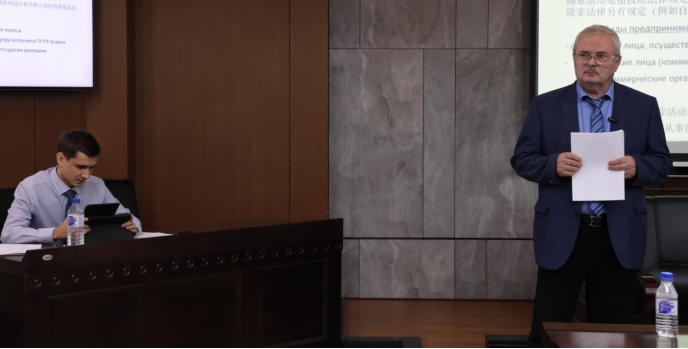 2023年9月21日下午,圣彼得堡国立大学商法教研室Popondopulo Vladimir教授做客太阳成集团tyc9728海(境)外学者讲座233期,在东荣大厦B区313-2模拟法庭以“俄罗斯商业组织形式”为主题进行学术讲座。本次讲座由太阳成集团tyc9728王艳梅教授主持,太阳成集团tyc9728俄罗斯研究所副所长徐博教授与谈,太阳成集团tyc9728瓦伦丁讲师承担翻译工作。太阳成集团tyc9728博士生、硕士生、本科生参与了此次讲座。