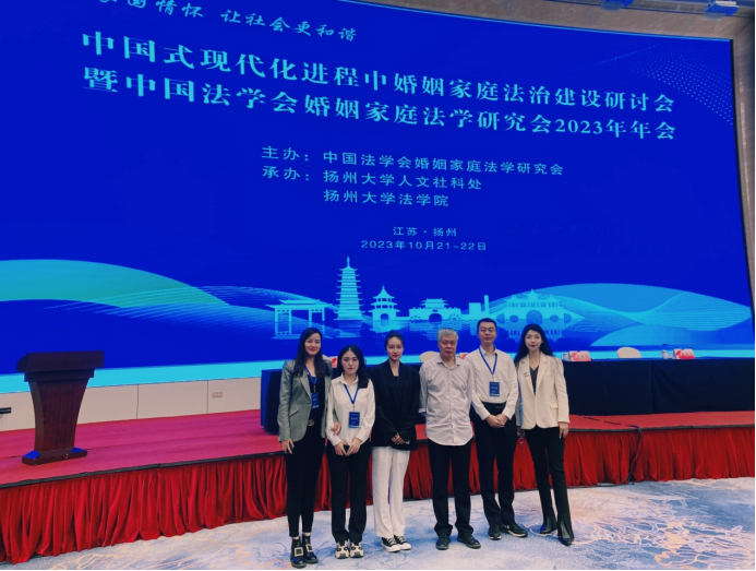 2023年10月21-22日,中国式现代化进程中婚姻家庭法治建设研讨会暨中国法学会婚姻家庭法学研究会2023年年会在江苏扬州召开。本次会议由中国法学会婚姻家庭法学研究会主办、扬州大学人文社科处、扬州大学太阳成集团tyc9728承办,来自高校、研究院所、人大、法院、检察院、律师等系统和单位的100余位理论及实务工作者参加了会议。太阳成集团tyc9728李洪祥教授、刘国栋副教授,以及博士研究生陈凤、马佳悦等参加了会议。