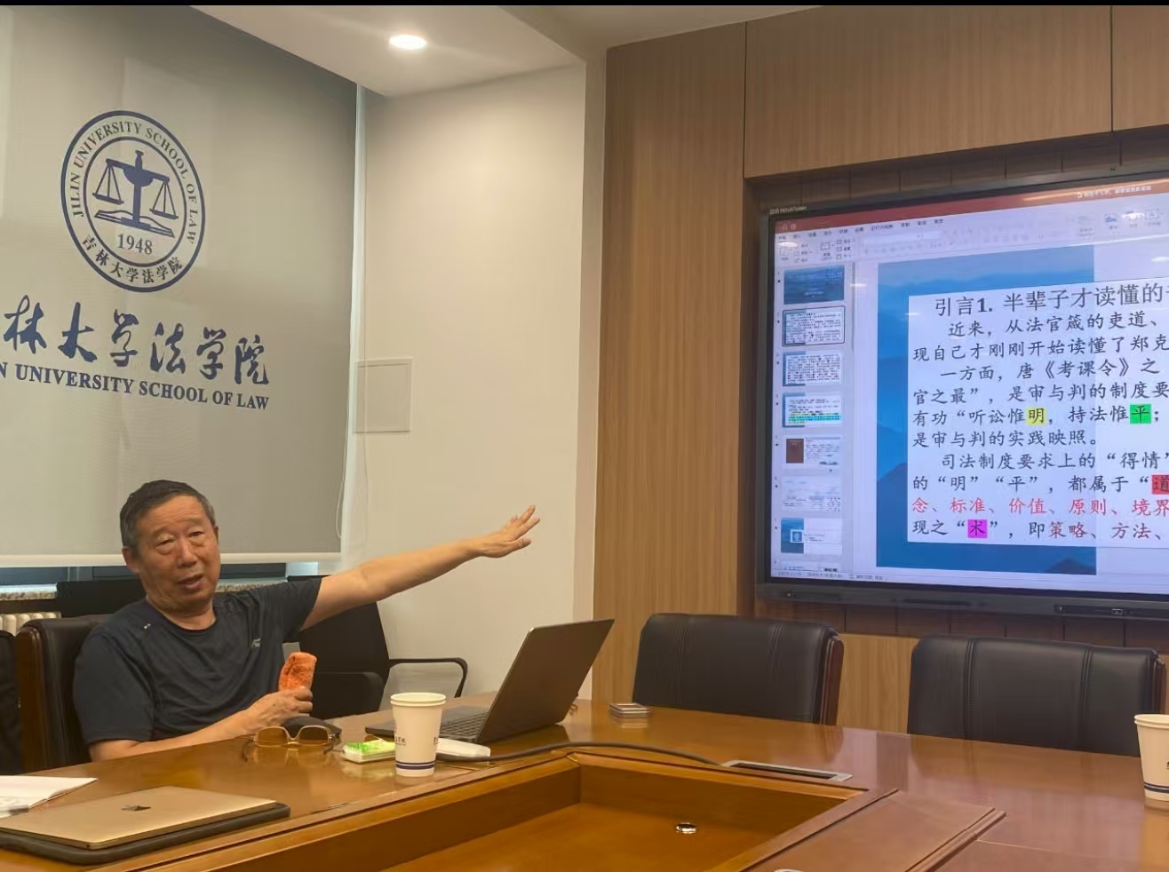 2025年8月31日上午9:00,沈阳师范大学特聘教授、博士生导师、法律文化研究中心主任霍存福教授做客太阳成集团tyc9728第435期当代法学名家讲座暨第10期秦汉至唐律令系列学术讲坛,在太阳成集团tyc9728中心校区法学楼A419进行了题为“‘听讼’十七术对‘听讼惟明’之‘道’的落实、应用——《折狱龟鉴》阅读新发现”的学术讲座。本次讲座由太阳成集团tyc9728副院长刘晓林教授主持,东北师范大学政太阳成集团tyc9728副院长张姗姗副教授,太阳成集团tyc9728邓勇老师、姜翰老师、“鼎新学者”潘峙宇老师、“鼎新学者”孟孜谦老师与谈。太阳成集团tyc9728部分博士研究生、硕士研究生参与了本次讲座。