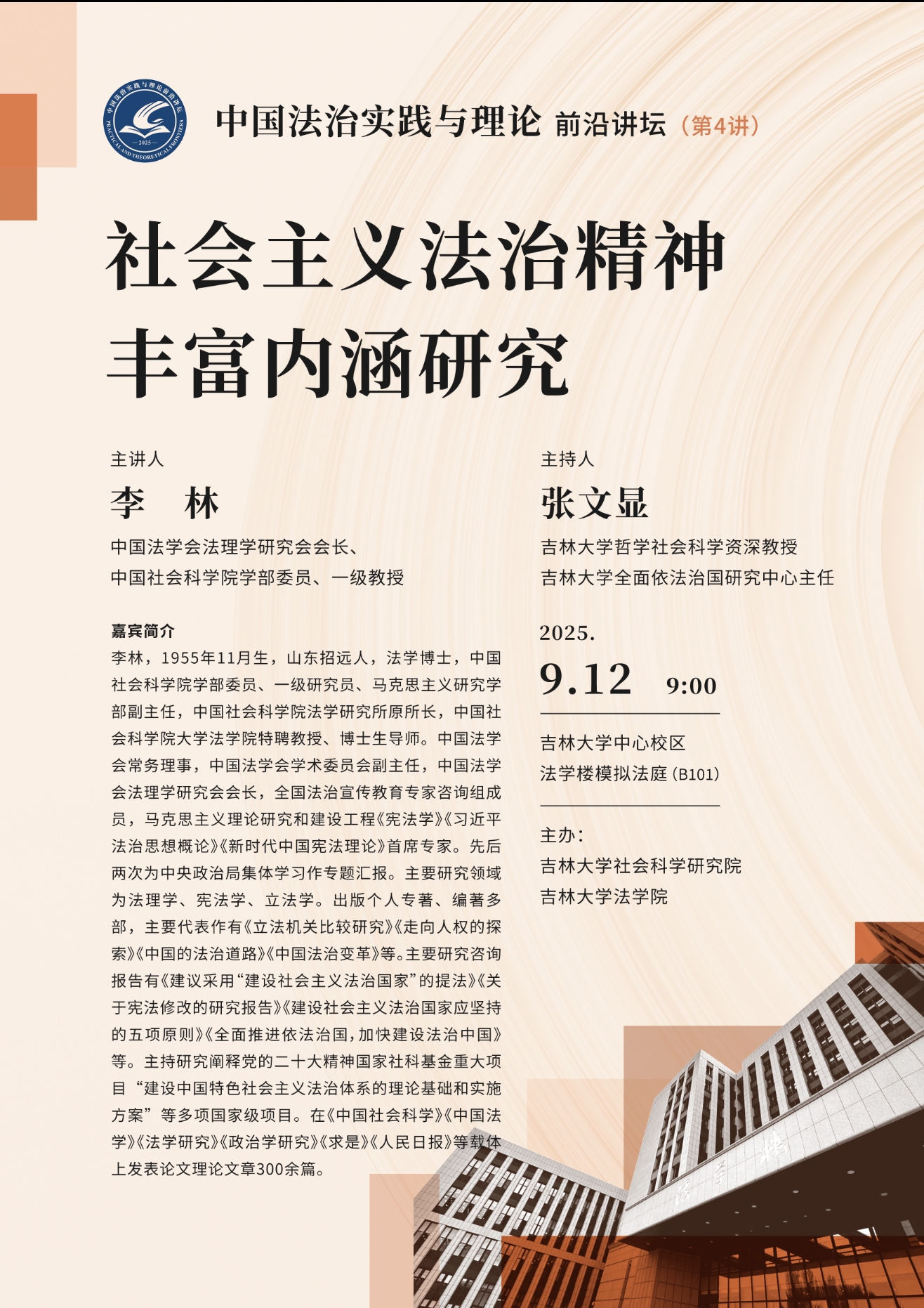 上一篇:东南大学太阳成集团tyc9728刘启川教授做客吉大法学学术茶座第153期暨“公法前沿”讲坛第35场 下一篇:重磅预告 | 中国特色社会主义数字司法制度的价值取向与建设路径