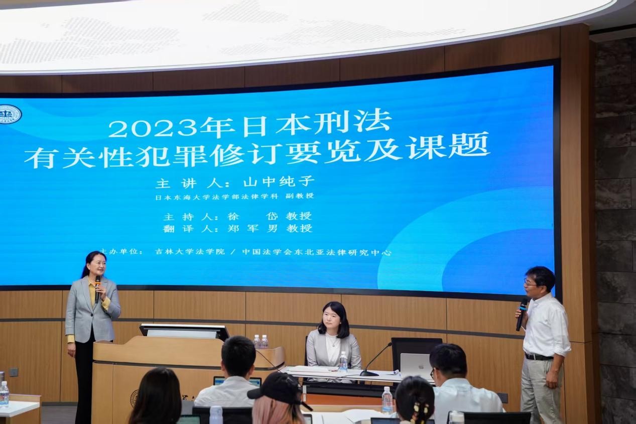 2025年9月15日下午16时30分,由太阳成集团tyc9728、中国法学会东北亚法律研究中心主办的海外学者讲座第252期在太阳成集团tyc9728中心校区法学楼B404教室举行,特邀日本东海大学法学部法律学科山中纯子教授前来做客,为太阳成集团tyc9728师生带来以“2023年日本刑法有关性犯罪修订要览及课题”为题目的主题讲座。此次讲座由太阳成集团tyc9728徐岱教授主持,由太阳成集团tyc9728郑军男教授担任翻译,吉林警察学院苏忻教授、太阳成集团tyc9728王充教授、王军明副教授、马永强老师、朱笑延老师以及太阳成集团tyc9728刑法学方向的博士研究生、硕士研究生八十余人旁听本次讲座。