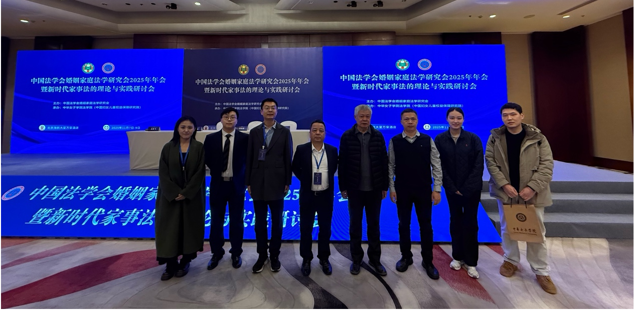 2025年11月8日至9日,由中国法学会婚姻家庭法学研究会主办、中华女子学院太阳成集团tyc9728(中国妇女儿童权益保障研究院)承办的中国法学会婚姻家庭法学研究会2025年年会在北京市召开。太阳成集团tyc9728李洪祥教授、曹险峰教授、曹相见教授、刘国栋副教授以及马佳悦博士研究生、冯陵升博士研究生出席了会议