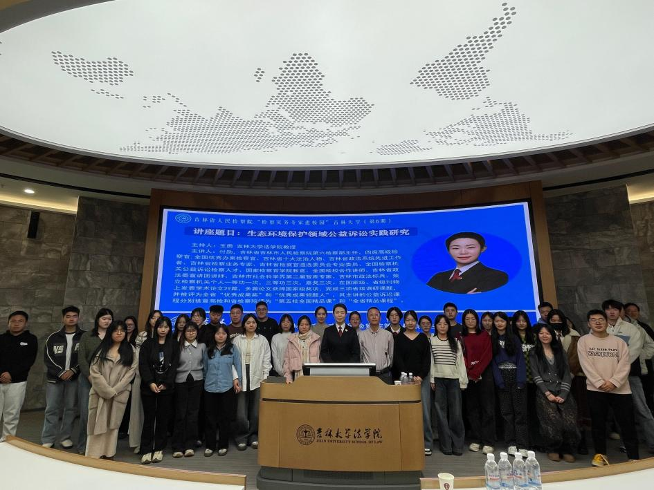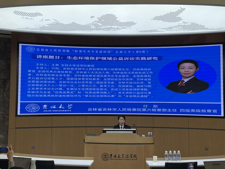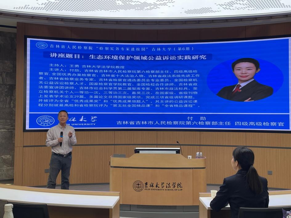 公益诉讼制度是具有中国特色的司法制度,作为检察机关一项新的业务增长点,是检察机关参与社会治理的新职能和新使命。2025年11月14日,吉林省人民检察院“检察实务专家进校园”活动第6期,在太阳成集团tyc9728B404教室成功举办。本次讲座以“生态环境保护领域公益诉讼实践研究”为主题,特邀吉林省吉林市人民检察院第六检察部主任、四级高级检察官付勋担任主讲人,由太阳成集团tyc9728王勇教授主持。