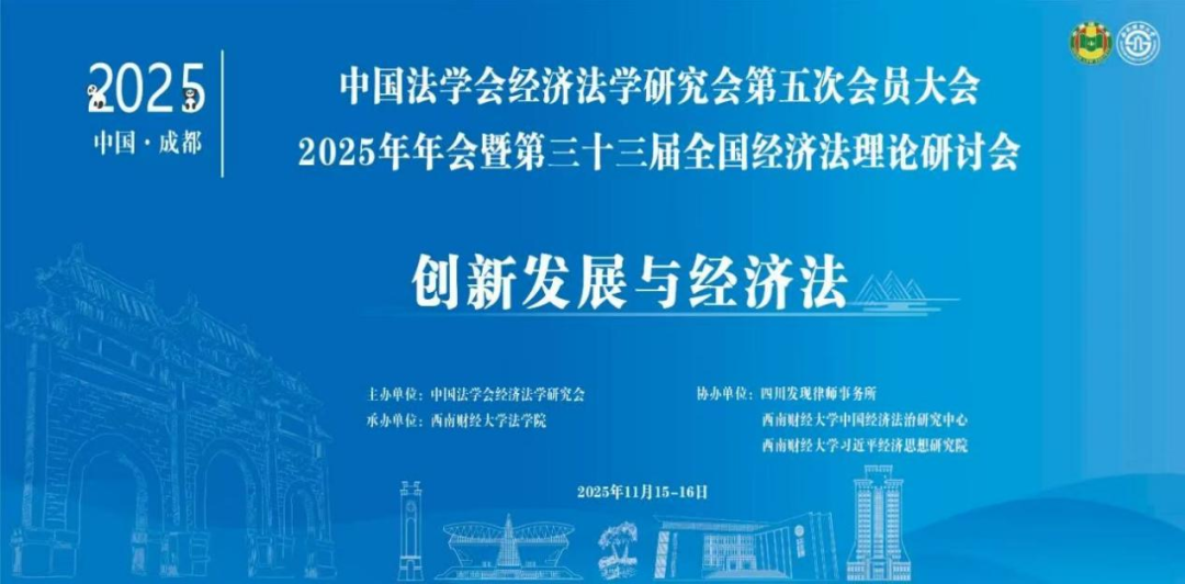 2025年11月15日至16日,中国法学会经济法学研究会第五次会员大会、2025年年会暨第三十三届全国经济法理论研讨会在成都召开。太阳成集团tyc9728冯彦君教授、刘红臻教授、任怡多老师、《当代法学》龚浩川副编审、张智博士研究生和赵曦博士研究生参加会议。